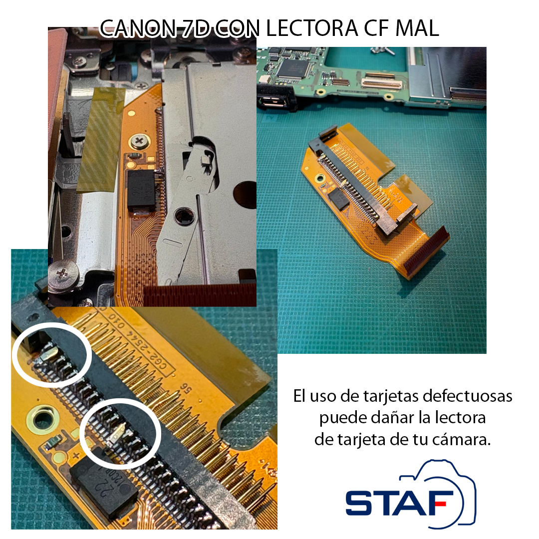 La lectora de tarjeta COMPACT FLASH de una CANON EOS 7D que no lee las tarjetas.